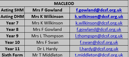 This half term seems to have come and gone in a flash. The girls have been so busy with various events in school from School Production auditions and rehearsals, sports fixtures, music recitals and concerts, House Music rehearsals, House socials and charity events. The girls have really thrown themselves into life at Durham School and I am thrilled with how involved our new girls have been and to our existing girls who have made them feel so welcome. As I leave school today to start my maternity leave, I know that MacLeod is in the best hands possible with Mrs Gowland taking over as Acting Senior Housemistress and Mrs Wilkinson taking over as Acting Deputy Housemistress. Please remember to contact your daughter's tutor or Mrs Gowland and Mrs Wilkinson should you need to report absences or have any general queries. ![]() Whilst I will, of course, miss the girls, tutors and MacLeod in general, I am sure I will have my hands full! I look forward to seeing MacLeod girls on my return to see how much they have grown and hopefully with a good few house trophies on mantel mantelpiece! House Hockey Most year groups competed in House Hockey this week. It was great to see such passion for the houses and friendly but fierce competition. Here are the results for each age group: ![]() The Senior competition has been postponed and will take place after half term. The final results will be announced after that competition has taken place. Congratulations to all girls who represented and supported MacLeod this week. Dates for your Diary Information for the following events will come out girls or parents nearer to the scheduled date. Tuesday 11th November – Year 8 Social (4.30-6pm), Year 8 Parents Evening (6pm) Tuesday 18th November – Sixth Form Open Evening for Year 11 pupils (6pm) Wednesday 19th November – House Music Competition (Chapel) Timings TBC but it will be in the evening, no parents this year due to being hosted in the Chapel Tuesday 25th November – Year 11 Social (4.30-6pm), Year 10 Parents Evening (6pm) Thursday 4th December – MacLeod Parents Mulled Wine and Mince Pies Event (5-6.15pm) Monday 8th December – Christmas Charity Bake Sale Hold Fast! |